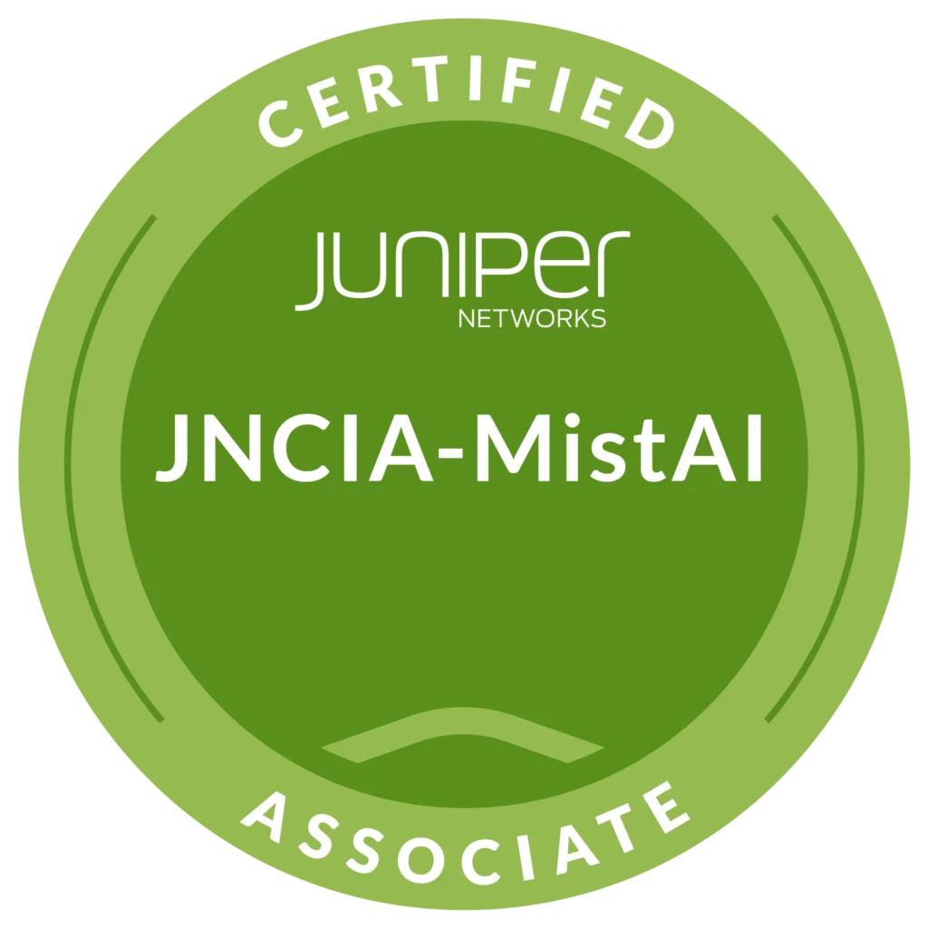 JNCIA-MistAI is an associate-level certification that validates foundational knowledge of Juniper Mist AI, cloud-managed networking, wireless networking, and AI-driven operations.