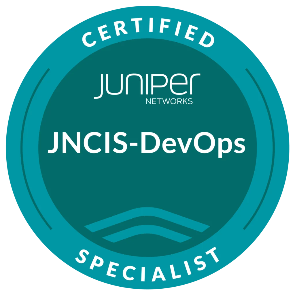 JNCIS-DevOps is a specialist-level certification that validates your knowledge of Juniper DevOps automation, scripting, CI/CD workflows, and network automation using Junos platforms.